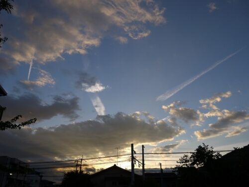 雨上がりの夕方、いろんな雲が空にいたずら描きされていた。 灰色とピンクと金色が混じり合う。 振り向くと、比叡山の上の雲もピンクに染まっていた。 まるで宇宙に広がる星雲のよう…。