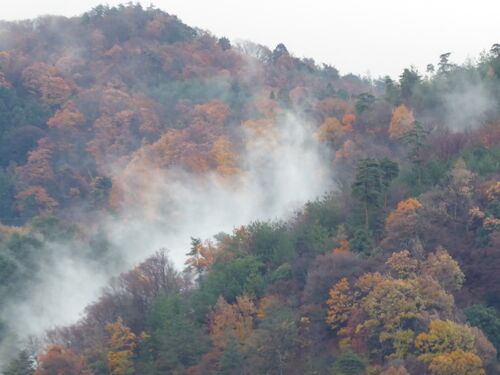 昨晩は、風が雨を打ちつける嵐でした。 朝になって風は止み、山からは雲が立ちのぼって行きました。 (家にずっと引き蘢っているので、山の定点観測化している今日この頃、^-^;)