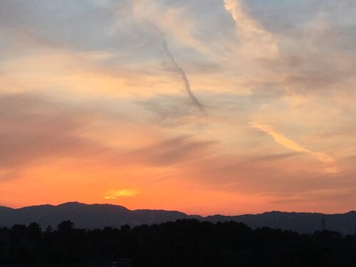 1月18日の夕焼けと、 白い大文字。 赤く染まる大文字が見たかったんだけれど、 ちょっとタイミングが遅かったみたい…残念。