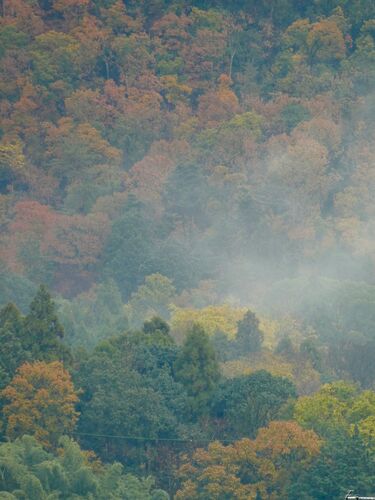 靄がたちこめる山は日本画のよう。 先日、このメタセコイアの近くまで散歩した。 この少し上に墓地があった。 墓地からは見晴らしがよく、京都市街が見える。 けれど、こちらからは木々に守られて見えない。 きっと静かに眠れるところなのだろう。