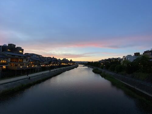 久しぶりに四条に出た帰り道。 ああ、夏の夕空だと思った。 そしてこれは夏至の日。 日食は見逃したけれど、黄金色の空を見た。 そして10分ほどすると、赤く燃えてとても複雑な色になった。