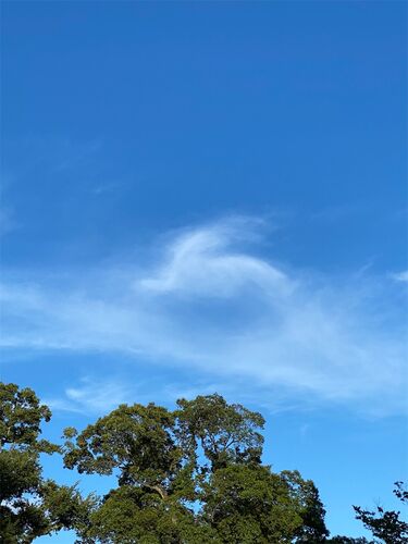 仕事帰り、ふと空を見上げたら、うさぎが飛び跳ねてた。 青い空を気持ちよさそうに駆けていくよう。 (おまけ) チチっと声がするので、見上げるとエナガの群れがいた。 カメラを持っていなかったので、iPhoneで撮る。 10倍で、やっとエナガだとわかるくら…
