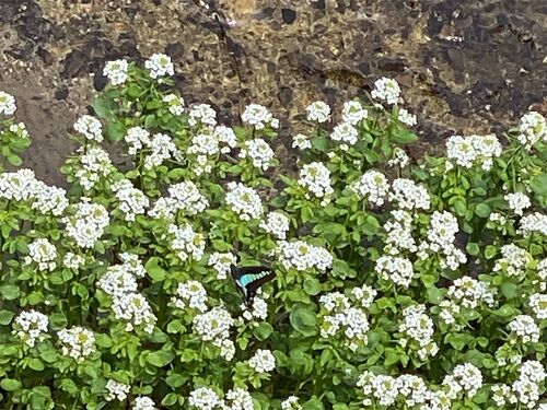 ふと川をのぞいたら、オランダガラシの花の上で舞うものが。 アオスジアゲハが花から花へと移動して、蜜を熱心に吸っていた。 こんな時にかぎって、コンデジを持ってない。 iPhone11proではこれが限界。 うーん、いまの15ならもう少しアップにできるのに。 …