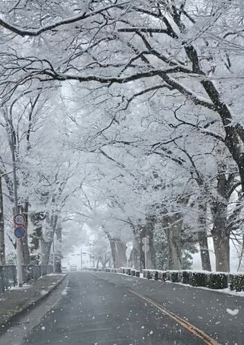 2月24日(月)雪が降るなか、車を出した。 雪の花をつけた並木道のもとを走る。 美しさにひかれて助手席から写真を撮った。 加茂街道、桜並木が雪並木に。 美しい雪のトンネル❄️ (おまけ) www.threads.net この投稿をInstagramで見る こみち(@kazenokom…